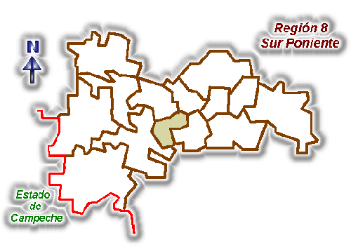 Limita con los siguientes municipios: al norte con Chapab, al sur con Ticul, al este con Maní y al oeste con Ticul.