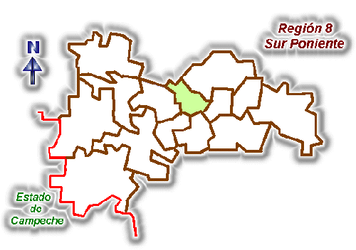 Chaltubalam, Limonar, Moam, Pisté, Saca, Sacalum, Sacalumchen, San Agustín, San Andrés, Tikinmul, Took, San Juan, San Mateo Dos, San Salvador, Santa Cruz, Santa María, Simkilá, San Bernardino, Xtecab, Santa Catalina y San Francisco.