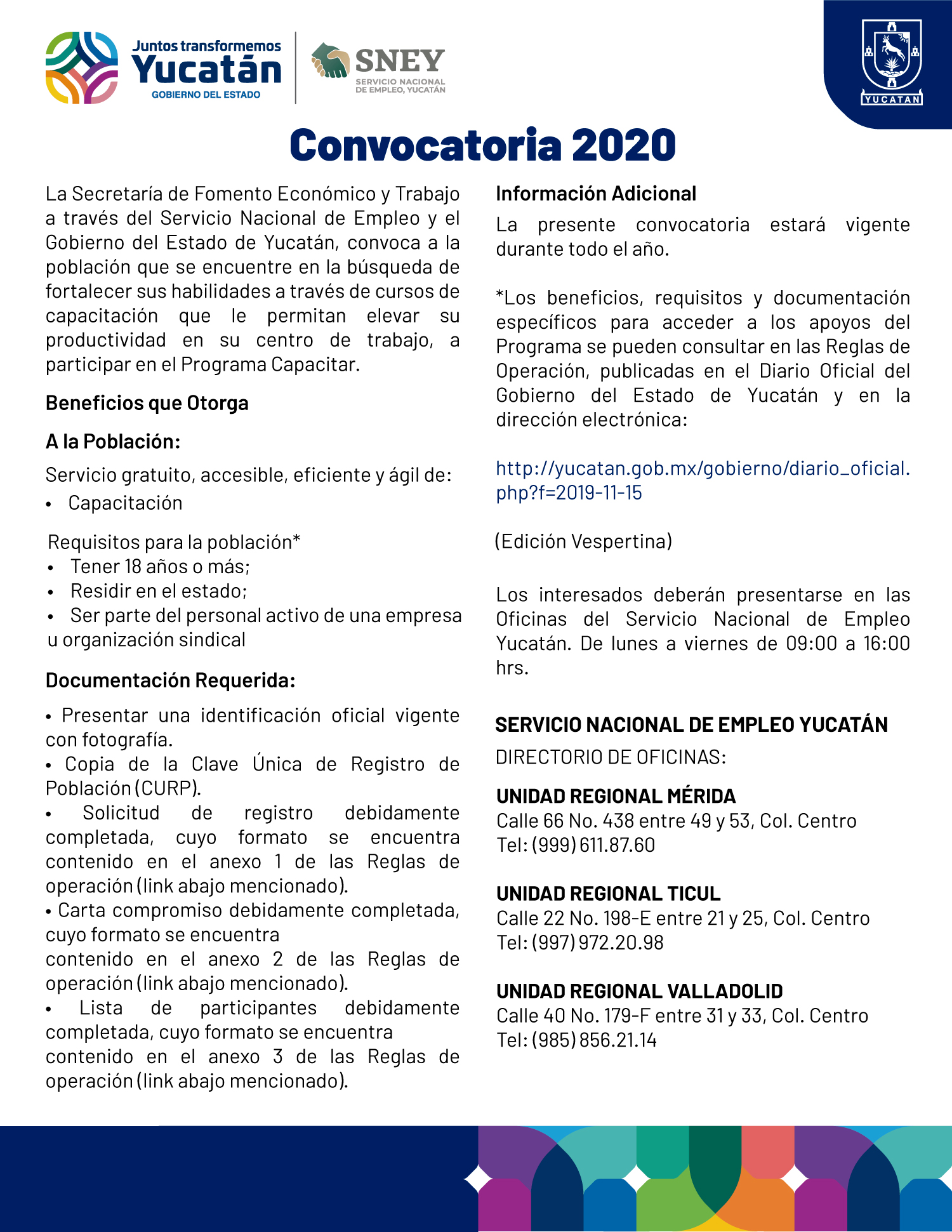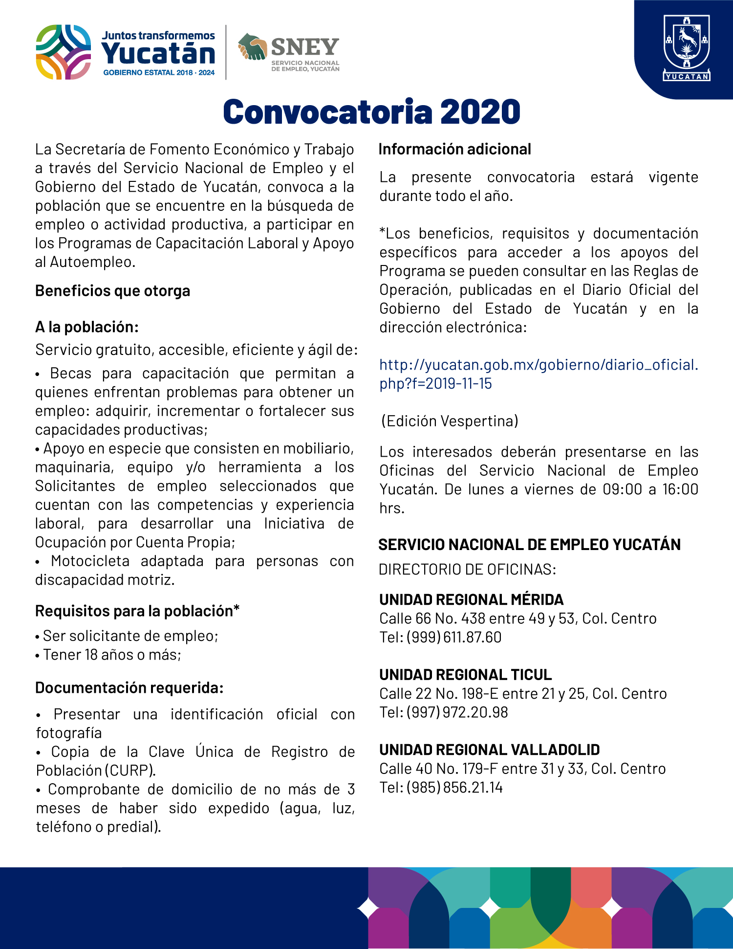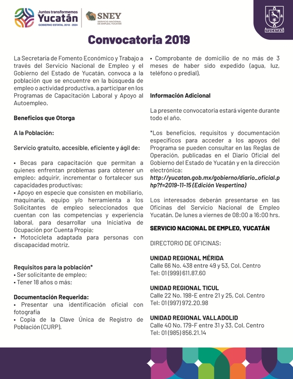 - Directorio de atención de las Unidades Regionales del Servicio Nacional de Empleo, Yucatán
